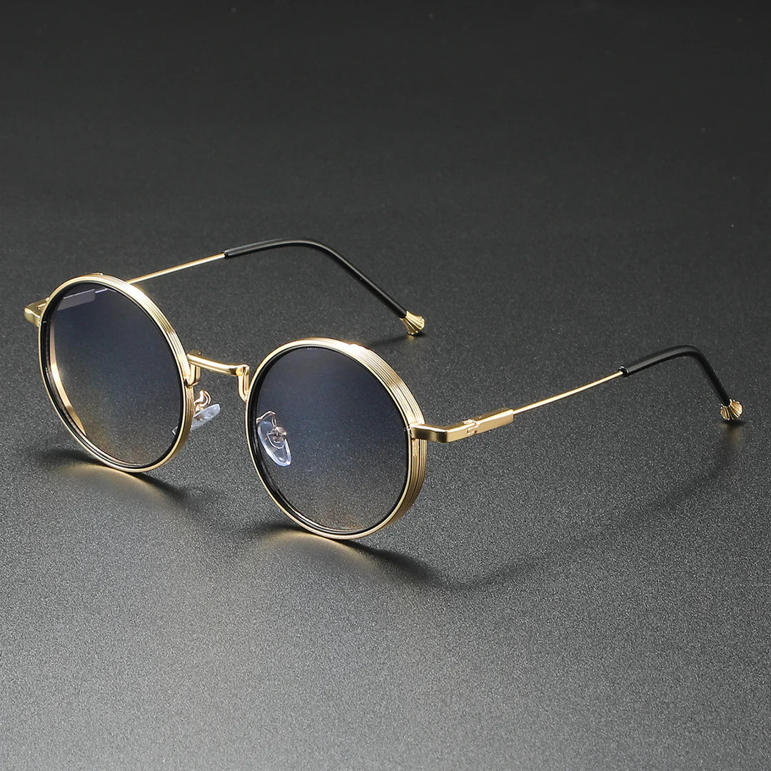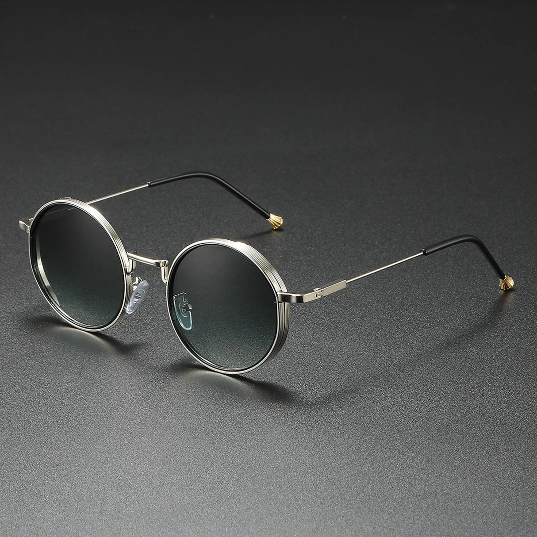 These sleek round sunglasses feature a polished metallic frame and UV400 lenses, combining timeless style with reliable sun protection.