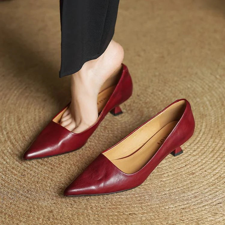 Designed for effortless sophistication, these leather kitten heels blend comfort with timeless style. Perfect for polished workdays and graceful occasions.