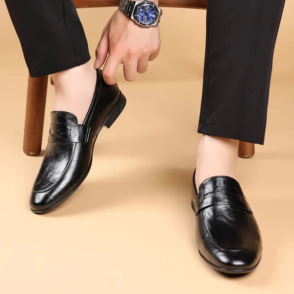 Crafted from smooth, polished full-grain leather, these loafers offer a refined, professional look with a lightweight and comfortable feel. The effortless slip-on design and clean profile ensure you make a sharp impression at any formal occasion.